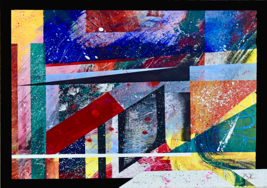 Multicoloured and multilayered with many dimensions and angles, something you can get lost into. Hang it any way your heart desires! Originally painted in acrylics.