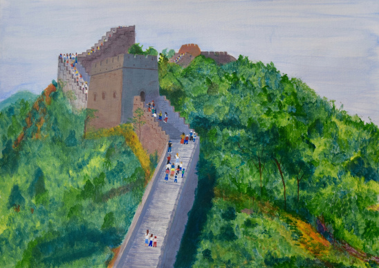 "Long Wall' or Chang Cheng, one of the New seven wonders of the world as announced in 2007. It was built in Northern China to prevent invasion and protect the silk road trade. What a magnificent sight it must be! Until I can travel to see itmyself, I can marvel at its beauty from a distance with this piece.