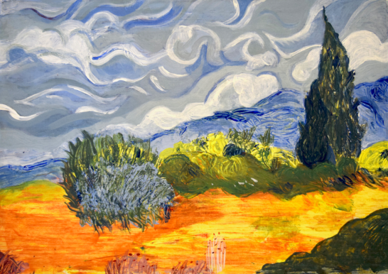 Vincent Van Gogh inspired original painting in acrylic in a similar style to his painting form. As a fan of this remarkable artists' work, I thought I'd try painting one of my favourite pieces by him with my own touch.
