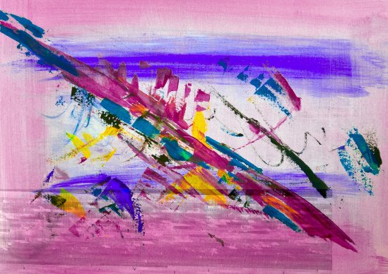 Purple abstract painting in acrylics with palette knife and brush work. See these colourful strikes interact and complement each other. Originally painted in acrylics.