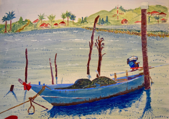 Fishing boat in Koh Samui, Thailand, captured while I was holidaying with my family. It was a beautiful scene to paint, something I wanted to capture as we finished our excursion for the day. Originally painted in acrylics.